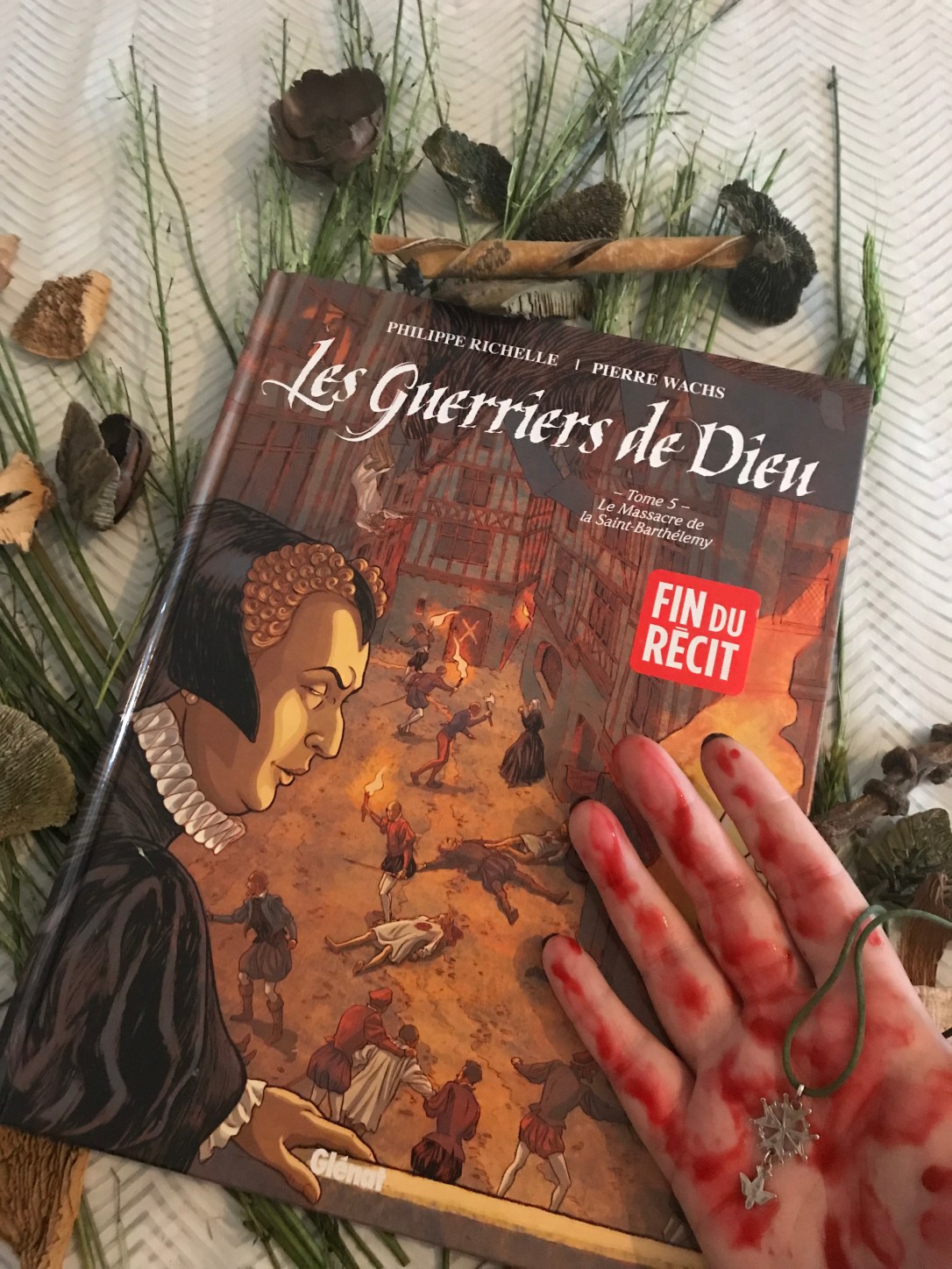 Hors de question de ne pas lire ce cinquième et dernier tome relatant l’affrontement entre catholiques et protestants au sein du royaume de France, mort dieu ! Cet album, je l’ai acheté le jour de sa sortie en août, en me disant que j’allais me jeter dessus mais… J’ai eu de nombreuses obligations lectures et l’album est passé à la trappe ! Alors hier soir après une journée éprouvante, je me suis dit que c’était un bon moyen de décompresser de le sortir de ma PAL !