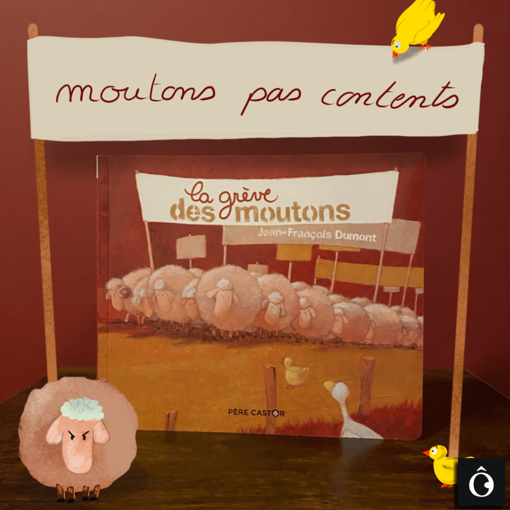 Nous sommes toujours en quête d’albums jeunesse avec des titres un peu barrés et surtout des histoires pas banales ! Avouez qu’une grève de moutons, ce n’est quand même pas commun !!!